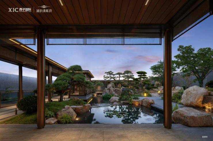 · 以中央水苑为心、连廊为轴,串联起一方赏月胜地。