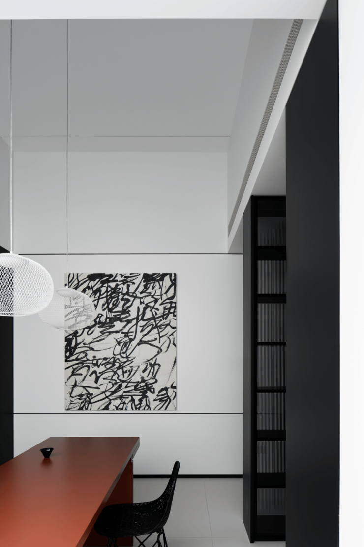 整个空间以静、雅、柔传达着家的精气神儿,黑白的交错,棱角的柔和,都是家的本色,都是极简的象征。