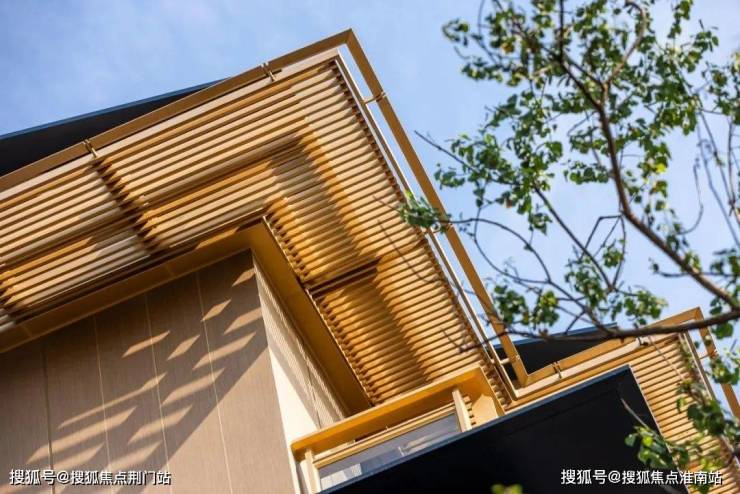 金:建筑立面中,使用了金色的金属格栅、型材,搭配出和谐的色彩感,施工工艺复杂,但可以使整个建筑在阳光下,散发出温润的光芒;