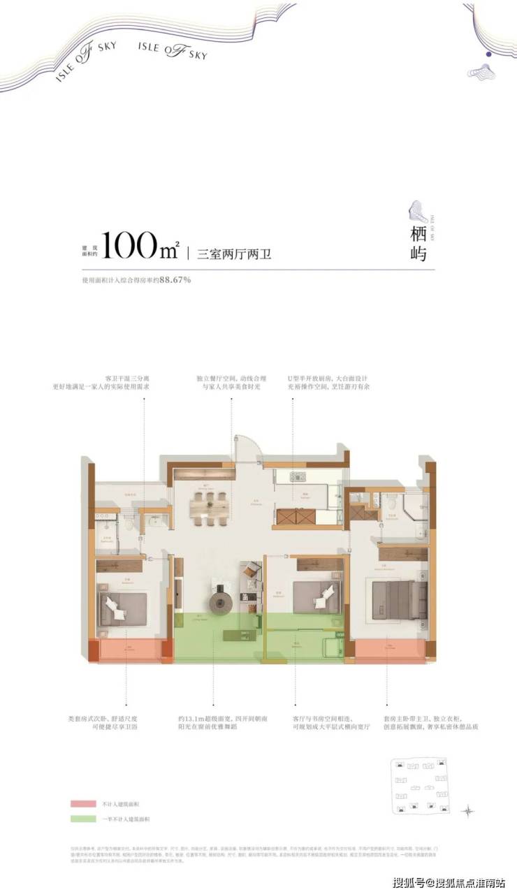 建面约100方户型: