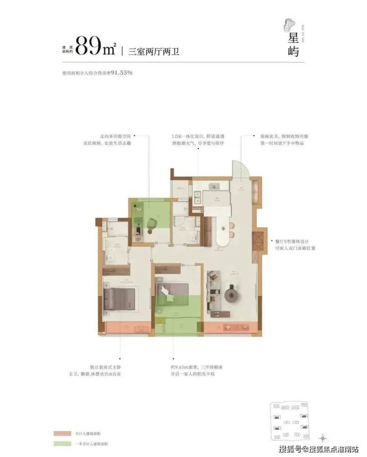 建面约89方户型: