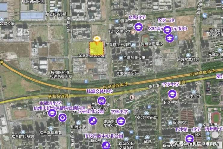 直距文思小学约500米,下沙第二小学约900米,近邻杭州实验外国语、文海湖畔中学等优质名校(期房不划分学区,以当地教育部门最终公示为准)。