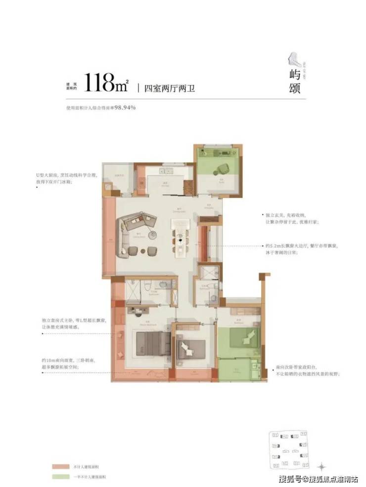 建面约118方户型: