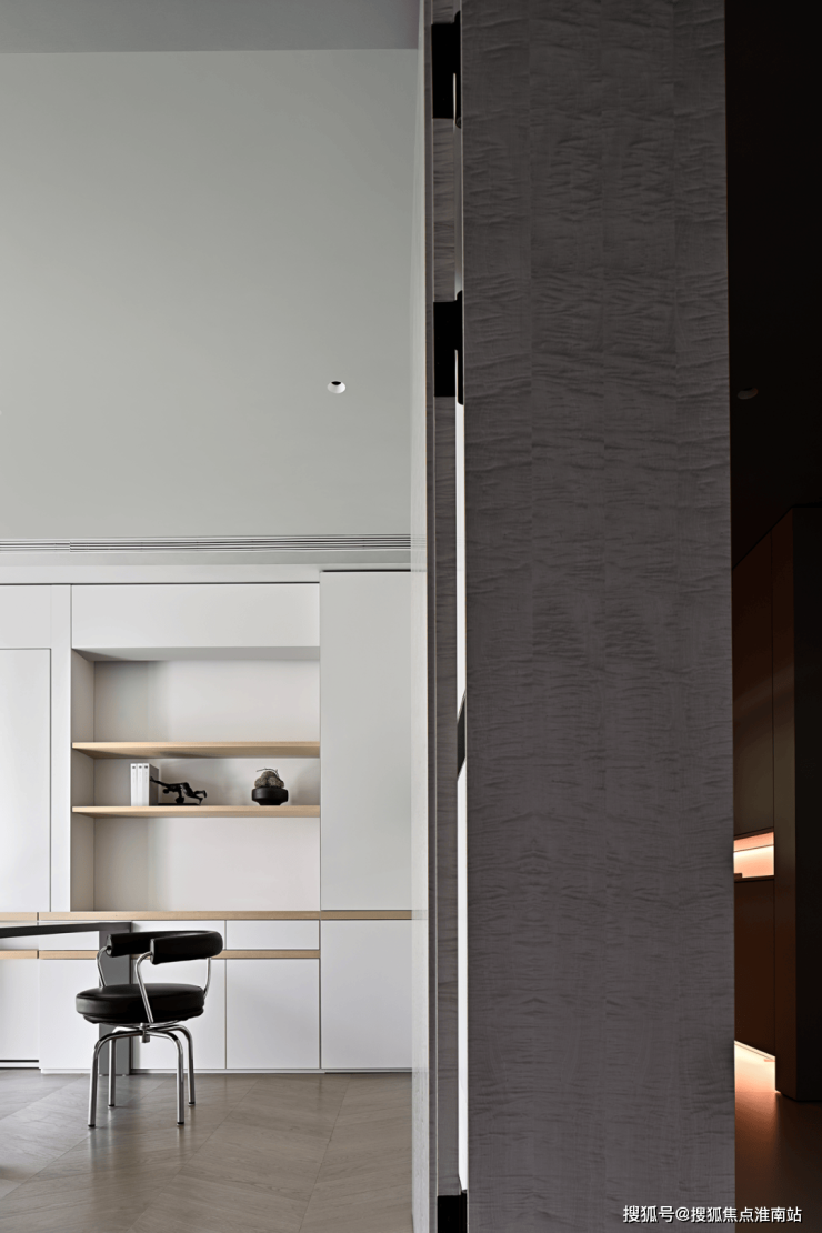 家具与墙壁的线条,都透露出一股简洁的韵味,相互交融,构成了一幅和谐有序的画面。这个空间不仅富有理性,还饱含感性,宛如一个温暖的容器,包容着过去、现在与未来。光阴在这里流转,回忆在这里沉淀,未来在这里展望。