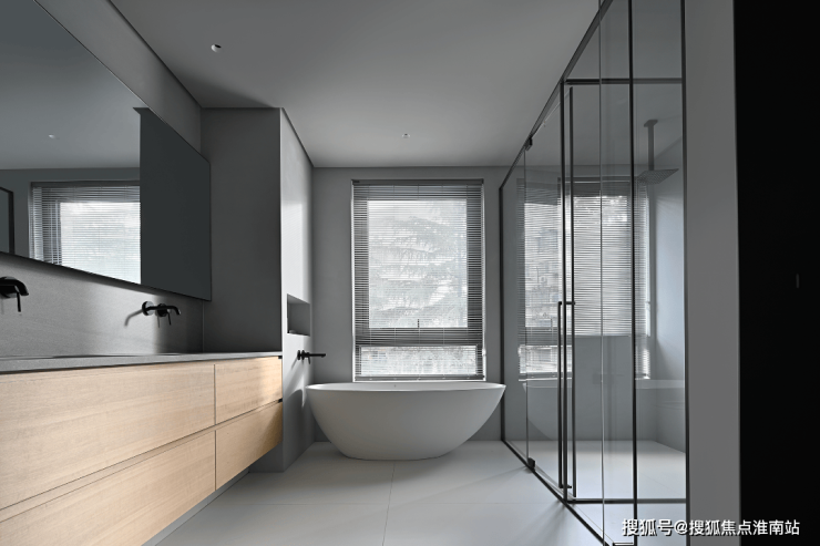光线在百叶窗的过滤后,格外温柔,悄然点亮室内空间。夜幕降临时,此处又变幻成了一个隐私的场所。