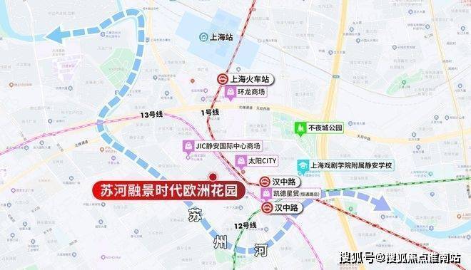苏河融景整个小区由汉中路、长安路、普济路与恒丰路围合,临近汉中路地铁站和苏州河滨河景观带。苏河融景整个小区分2期开发,其中1号2号一期开发,其余楼栋二期开发。