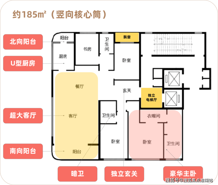 整体来讲,边户的185㎡户型比中间户型215㎡,采光面更大,利用率更高。