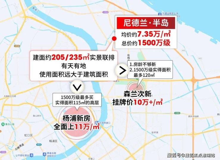 若以金桥、张江为核心通勤圈,尼德兰·半岛的联排业态远超其它产品(新杨思、北蔡),总价却仅为其一半左右。