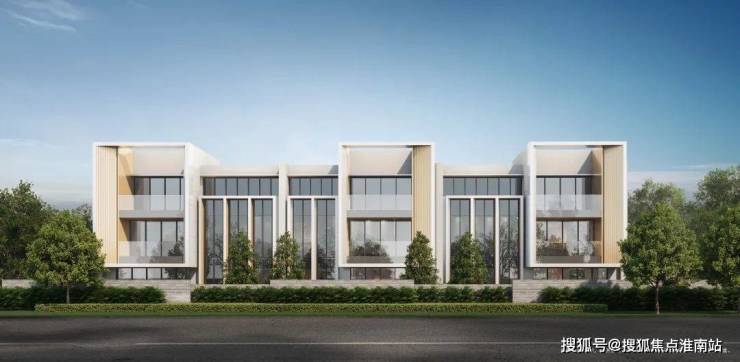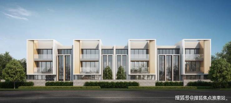 别墅产品,三联排为主,大开间,据悉楼间距达到12-14米,简约的几何线条结合大面积玻璃,让立面更简洁,更国际化,三层建筑通过设计呈现两层的视觉效果,整个立面讲究艺术建筑的层次感,推进关系,使每户都有独立的隐私效果。
