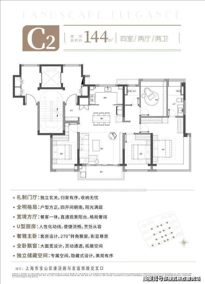 户型面积:主力户型为约92-144㎡的三至四房,全部一梯两户、南北通透。