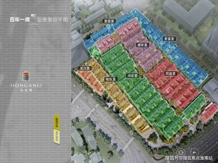 弘安里这块地原由8个街坊组成,其中东寿坊和永安里因后期加建改建较大,体量也很小,为了园区整体考虑,不再保留,延续了剩余6个组团:德年里、和乐里、宝兴里、更富里和鸿安里。
