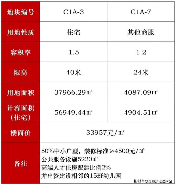成交价:210040万元+商品住宅装修标准4500元/㎡(集采价)+公共服务设施5220㎡(计容)+高端人才住房配建比例2%。
