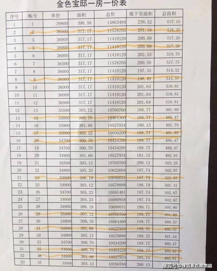 附一房一价表: