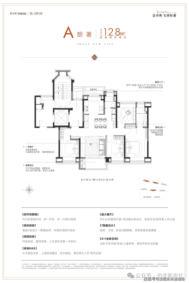 ◎真四开间朝南:据统计,2024年至今的上海新房市场中,建面在125-130㎡产品只有约9%做到了真四开间朝南,而地铁口的4房产品更是少之又少(数据来源于网络)。保利·虹桥和著建面约128㎡户型真四开间朝南,南向总面宽超13米,对比新房市场同面积段常见的10米面宽,采光和视野媲美千万级豪宅。