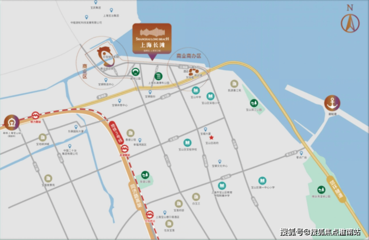 同时,「上海长滩」与国际邮轮港休闲商业配套及城市公园连成一体,西邻地铁3号线及宝山高铁枢纽(规划),南接宝山行政文化中心,尽享淞宝成熟优质的人文教育配套。