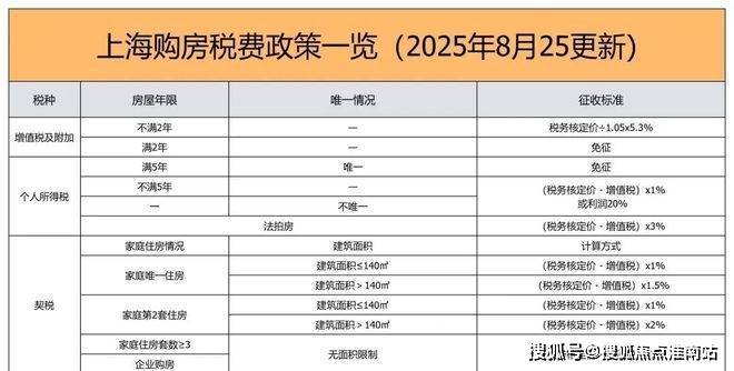 三、上海2025年8月最新购房税费政策