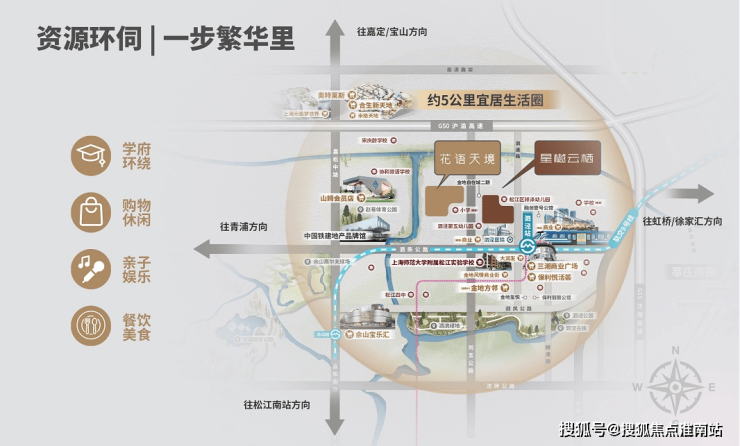 目前泗泾板块范围内已逐渐形成国际社区氛围,多维资源集聚,未来围绕泗泾板块将形成一个涵盖大型商业、高端医疗、综合枢纽、水系公园、品质住宅的国际化氛围。