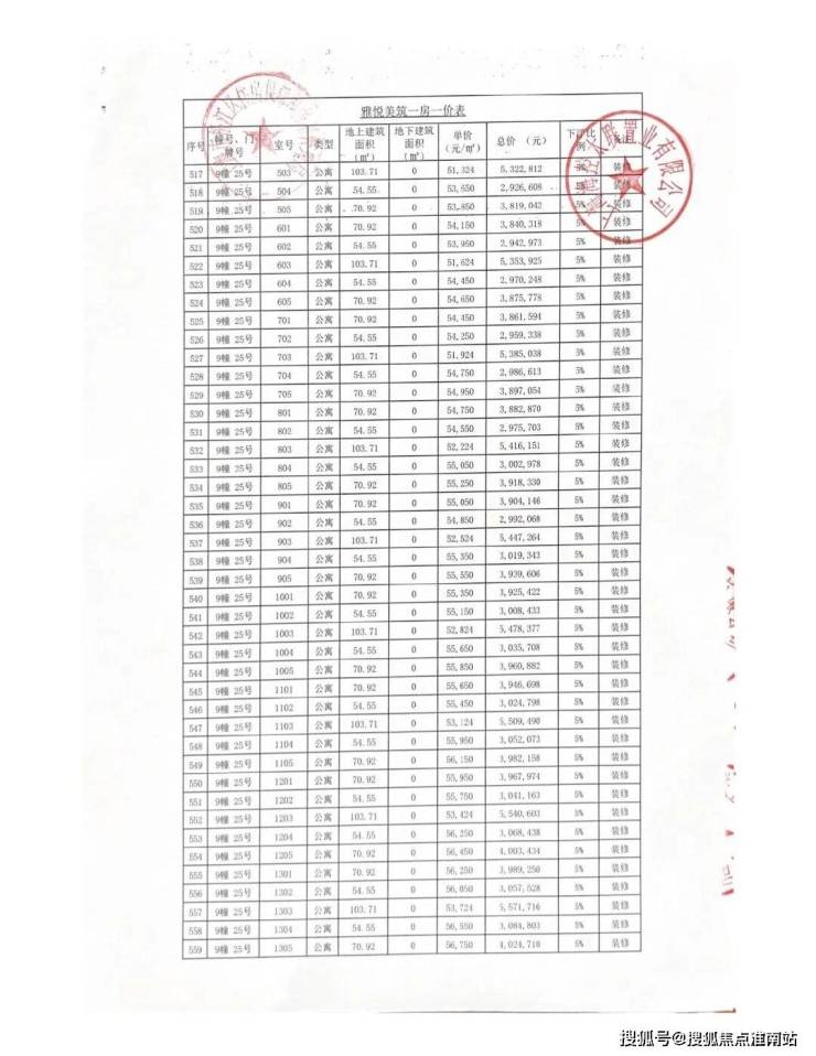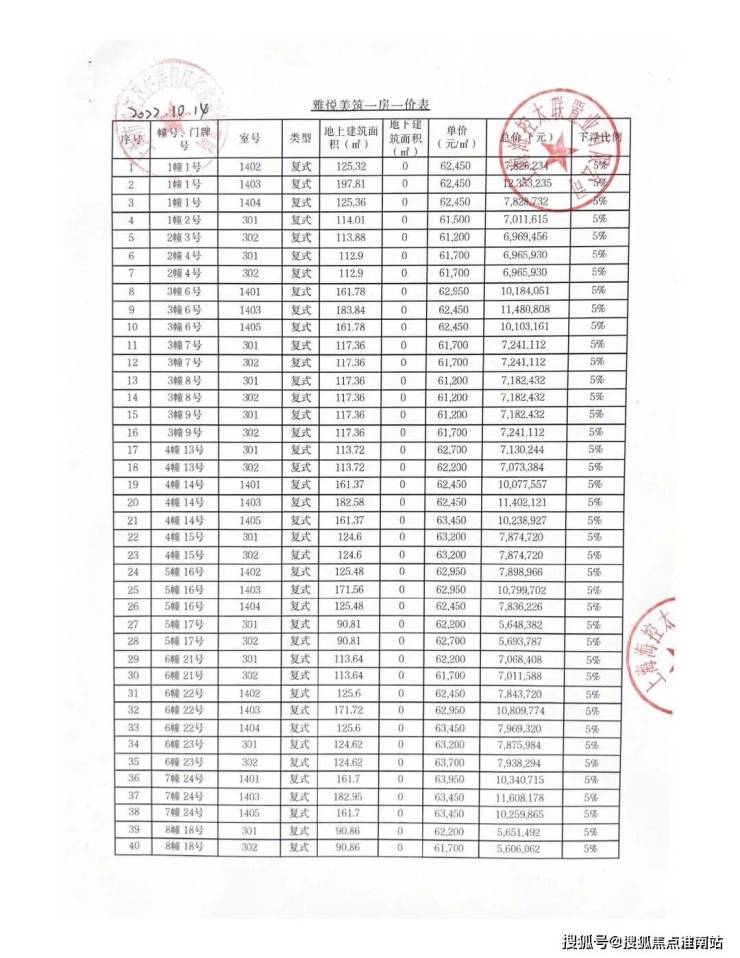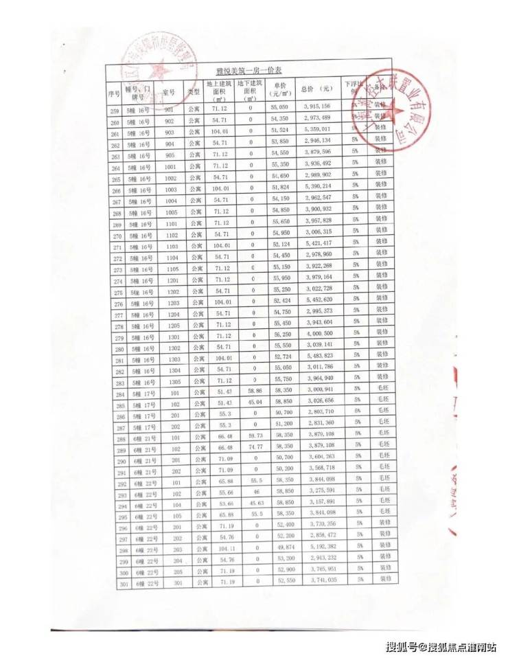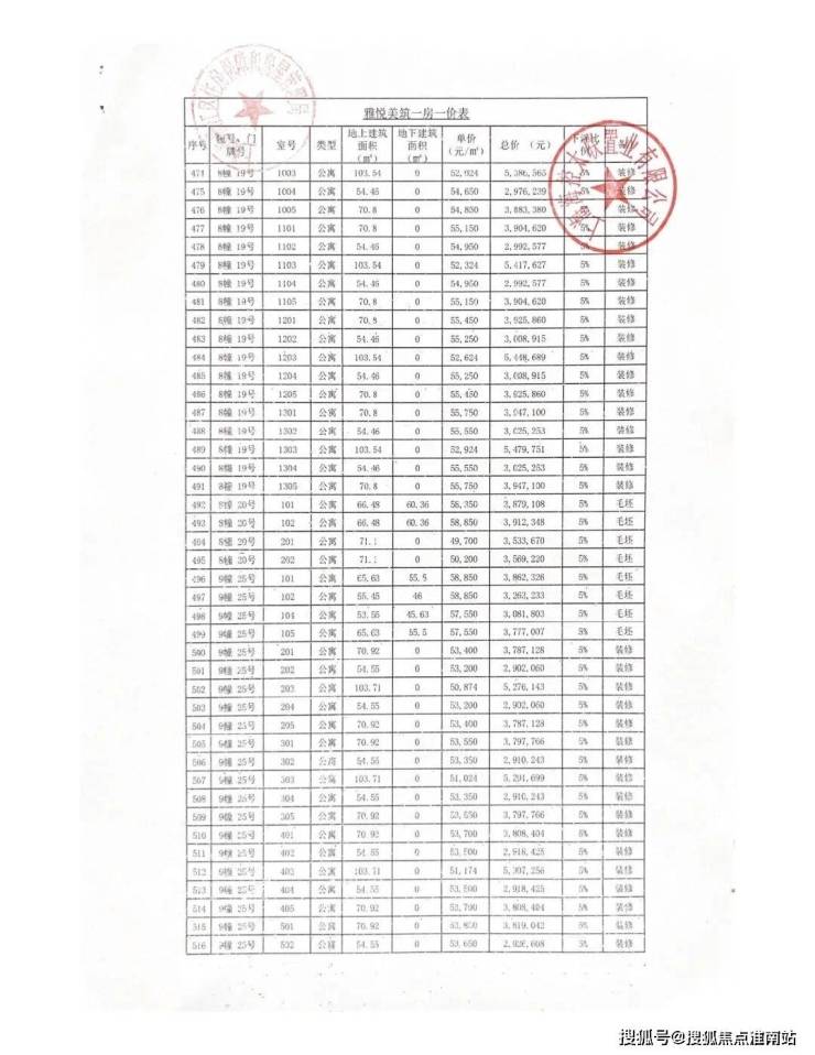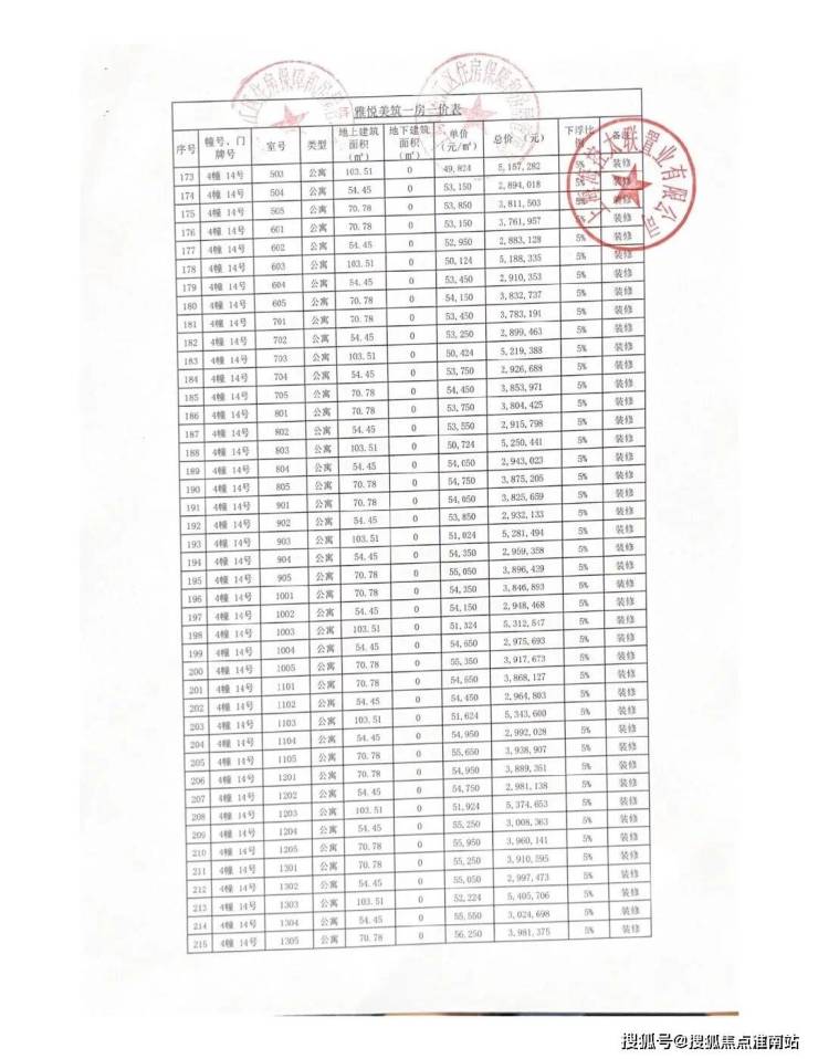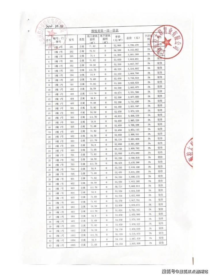 一房一价表