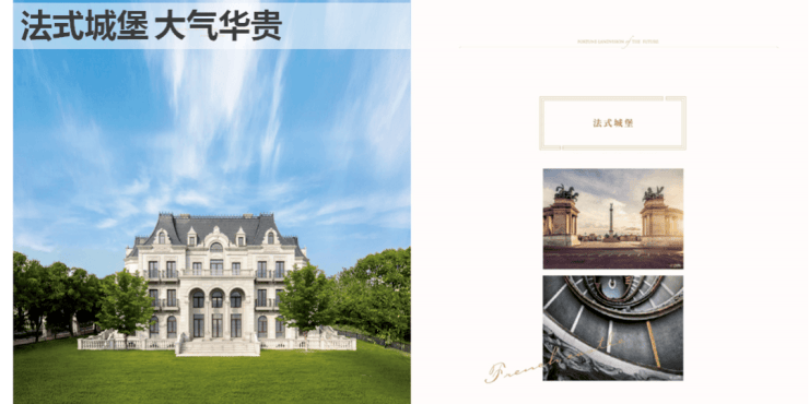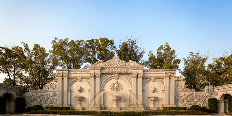 法式城堡重现雍容华贵,再续法式皇家风范。从整体到局部,精雕细琢,镶花刻金都给人一丝不苟的印象。一方面保留了石材材质、色彩本质的特定风格,让人感受到传统的历史痕迹与浑厚的文化底蕴,同时又摒弃了过于复杂的肌理和装饰,勾勒出奢华的气息。