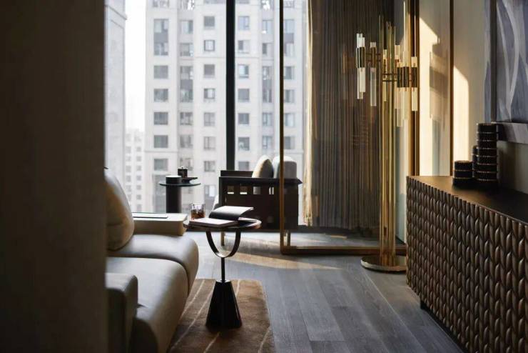 人的内心经由线性与秩序得到转化性的叙述,入口处金属秩序感的家具与挂画相得益彰,古北中央公园壹号公馆以家为画,展示对城市生活的独特感悟。