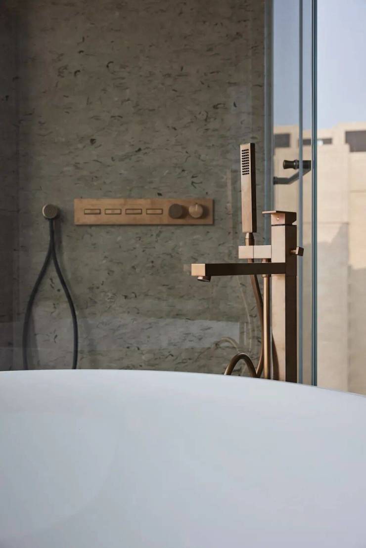 灯具采用葡萄牙奢侈灯饰品牌LUXXU的产品,在黄铜、玻璃和施华洛世奇水晶在手工工艺的结合下,形成了独特的精美光影表现,既是简洁空间的巧妙点缀,也是个人生活品质的彰显。