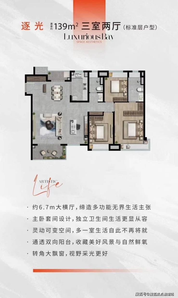 以7.6m大横厅,深U型厨房以及奢阔休闲阳台,彰显高阶气度与格局,独立入户的设计互不打扰,静享私密,南向大横厅,让阳光、风景与生活常伴。再次以奢阔美学艺术生活,敬献金山大人物。