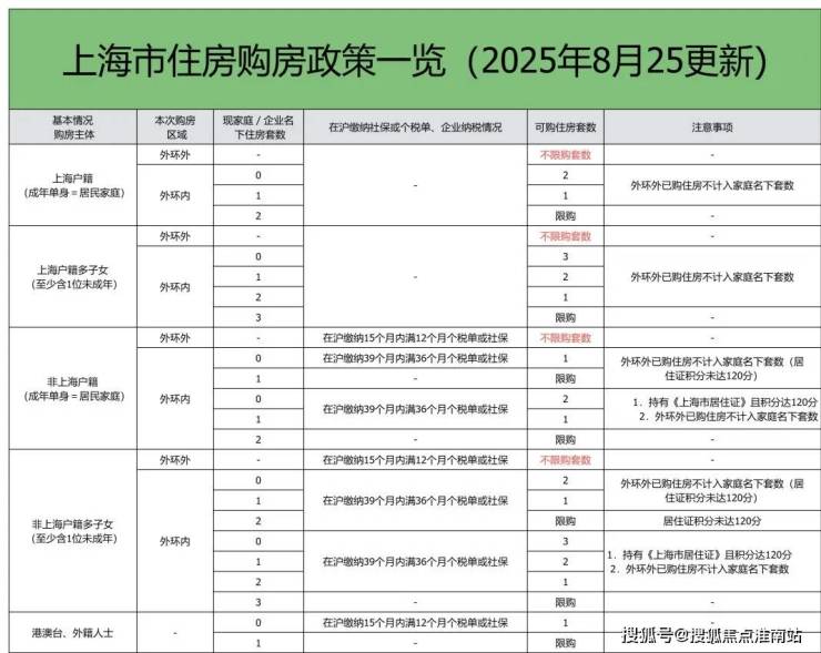 一、上海2025年8月最新限购政策汇总