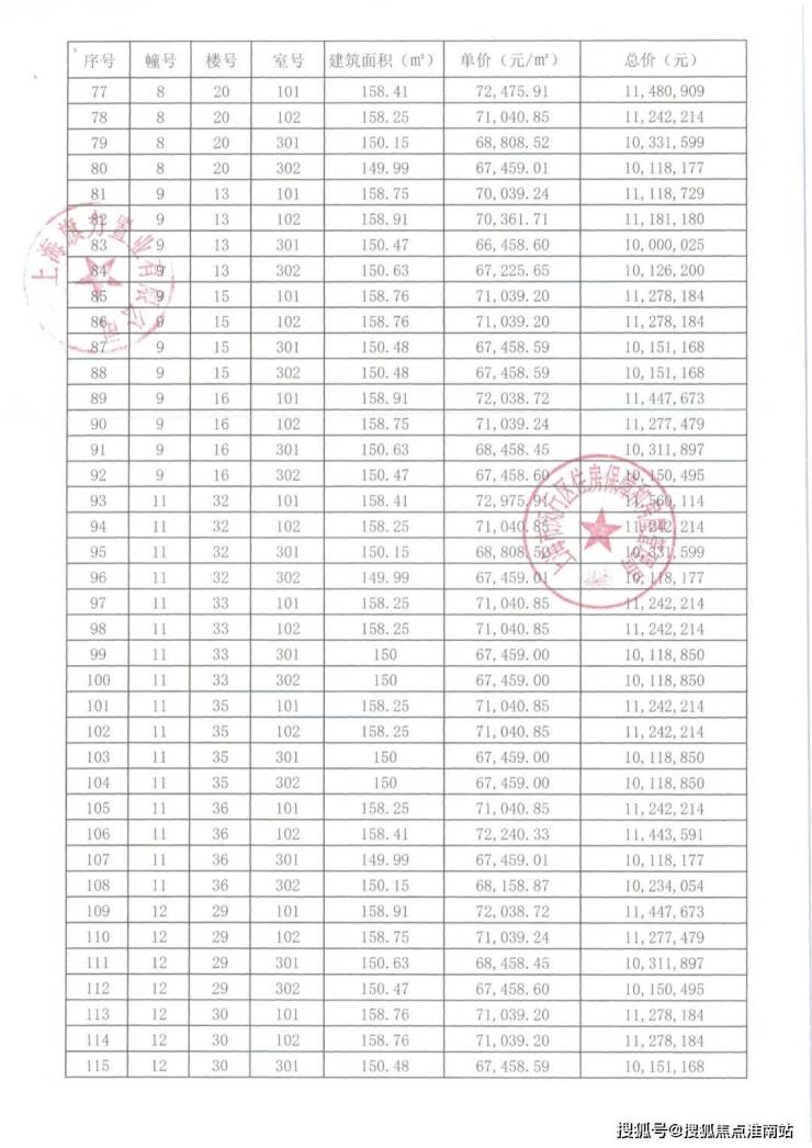 崇明某触发积分项目部分一房一价表