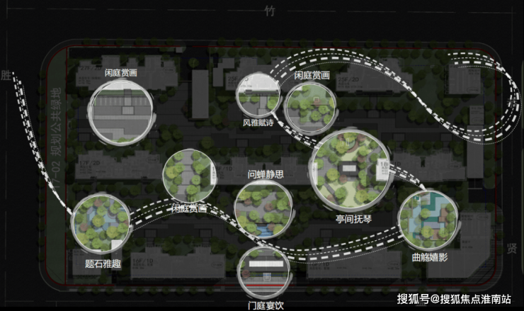 首推地块以南北一轴+东西两轴及核心景观区,构成“一园三轴”的景观结构,移步异景,如诗如画。