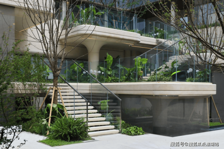 点睛之笔在于4层悬浮式阶梯,设计理念据说来自全球十二大奢华酒店之一的迪拜丽晶公寓,每一个观景露台都种植着不同的植被,一步一景,更重要的是,不同的露台对应着不同的观景视野点,将不同高度的下沉式庭院景观,通过极其优雅的方式传递给了业主。这个归家体验可以说是拉满了!
