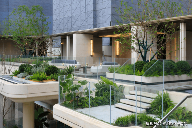 弧形石材工艺因其造价高、耗料多而闻名,而招商序从门庭、游廊、转换厅、风雨连廊到下沉式庭院,一以贯之的弧形石材,形成了统一的设计语言,营造视觉上的柔和高级感,招商序将这种传统豪宅的设计手法应用到了700万级的产品之上,真的是降维打击。