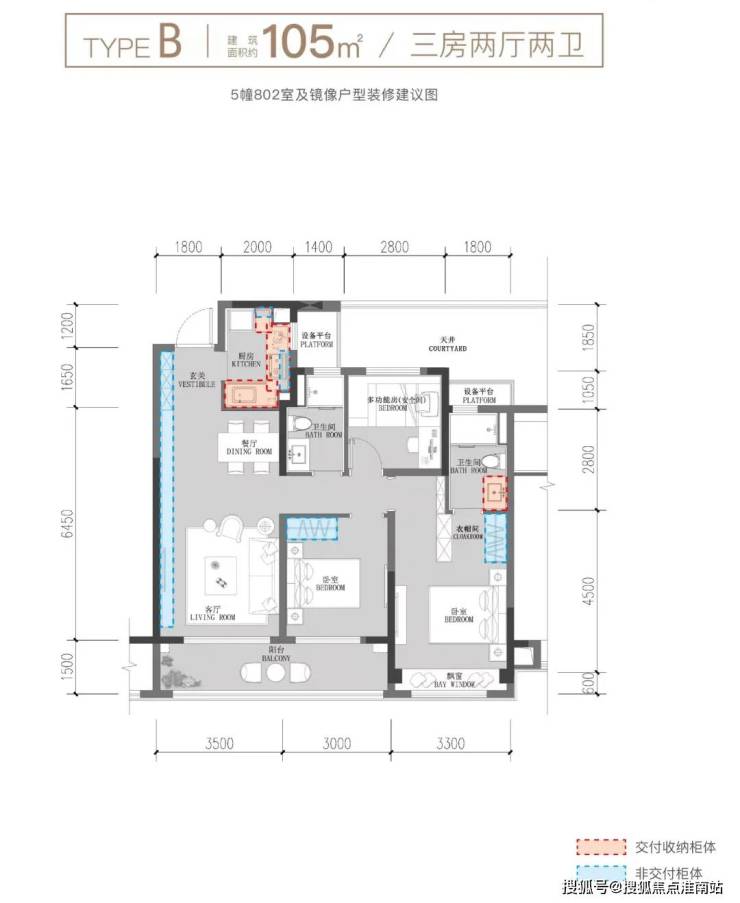 建面约105方户型图示意