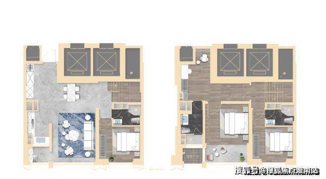 尤其主卧星级套房,配置独立衣帽间、书房,奢华主卫四分离,双台盆+淋浴区+大浴缸+智能马桶,私密性&奢适度无敌;