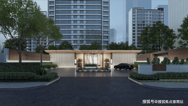 酒店式入口处的「落客庭院」,让归家的业主第一眼就能体验到松弛舒适的度假感,张力十足的造型大树,为整个入口处增添了一份自然和谐的氛围。