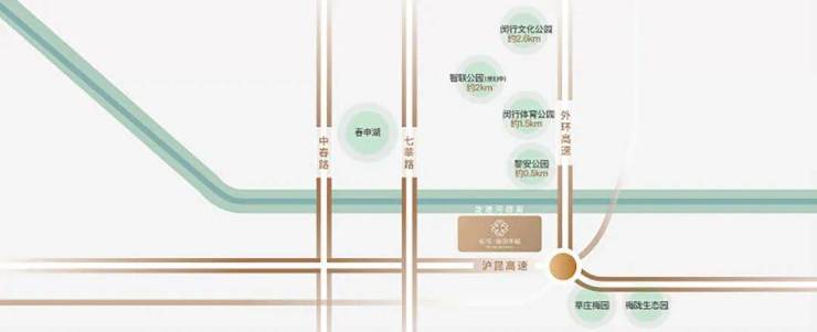 项目一侧是淀浦河南侧绿地和口袋公园,未来生活于此,清晨傍晚,即刻享受日常生活的悠闲惬意;闵行文化公园、闵行体育公园、智联公园(规划)、黎安公园、梅陇生态园、莘庄梅园、春申湖等优质森氧资源汇聚。