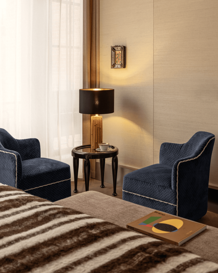 窗边的单人椅与床尾的凳榻,等待着一次阅读、一段眺望或一场无目的的小憩。