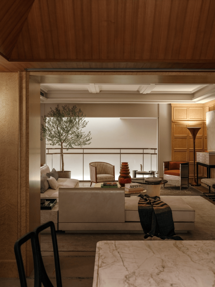 客餐厅之间设置了一道可灵活推拉的隔断门,使相邻的功能空间在闭合的独立性与开放的流动性之间自由转换,适应不同的使用场景与生活时刻。