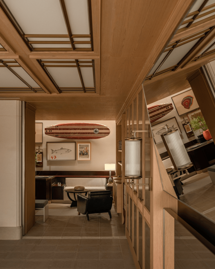 开放的形态将公共区域与相对私密的功能区直接串联起来,既保持了视觉的通透与行走的连续,也确保了使用中必要的空间隐私。