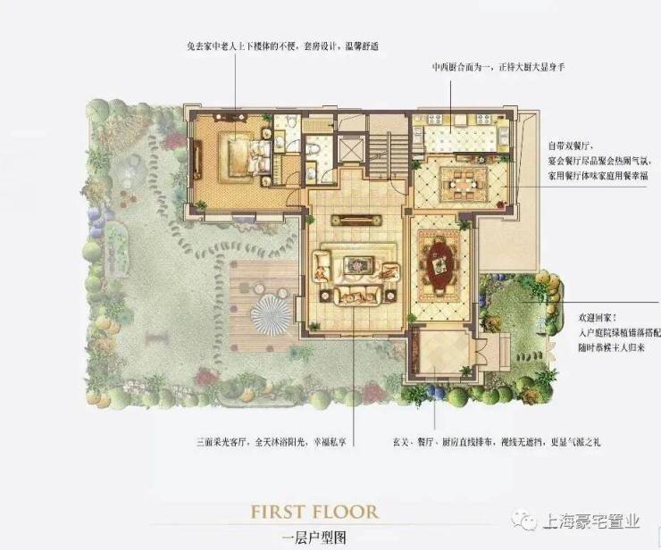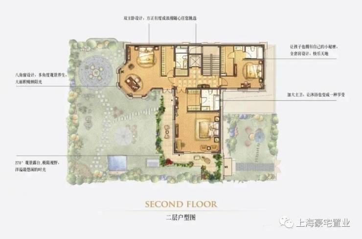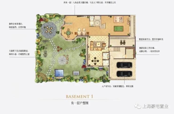 除此之外,每户都自带有2个下沉式私家花园及入户花园,其花园总面积更是达到了200平。