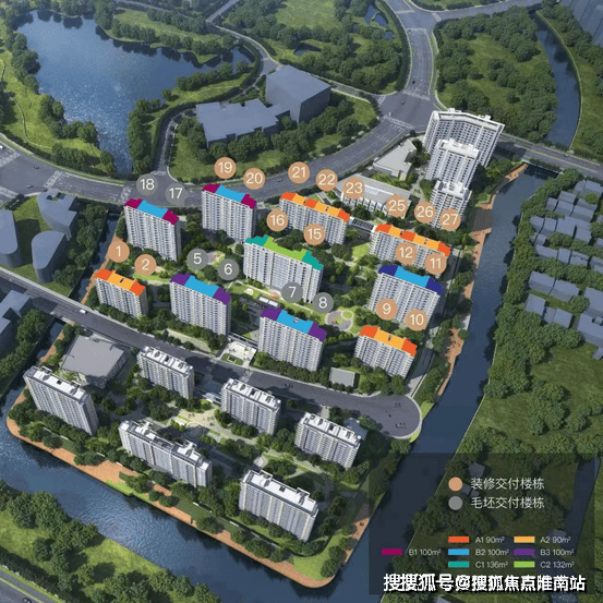 项目可售住宅主要分布在中区和南区,由南往北层数递增,项目首推1000多套,项目规划建设19栋高层住宅,1栋菜场,3栋配套楼,6栋电站,1栋门卫及1栋垃圾房。