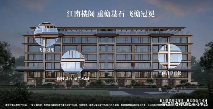 延续建发“王府中式”基因,采用风雅宋韵风格,立面以石材+铝板+铝板线条打造,细节考究,重现江南院居理想 。