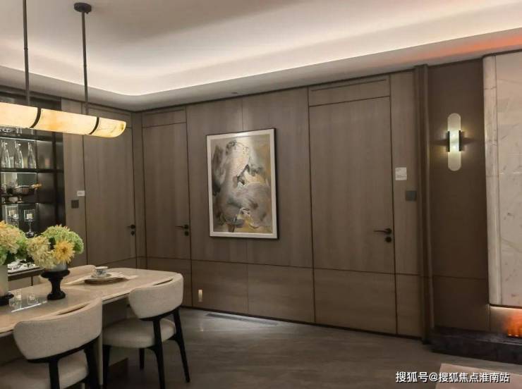 如果不仔细观察,你能发现这面墙后居然隐藏了三个房间吗?为了室内的整体美观,项目把三个房间门嵌入了背景墙之中,做工严丝合缝,墙面与门浑然一体,美观的同时还兼顾了隐私性!