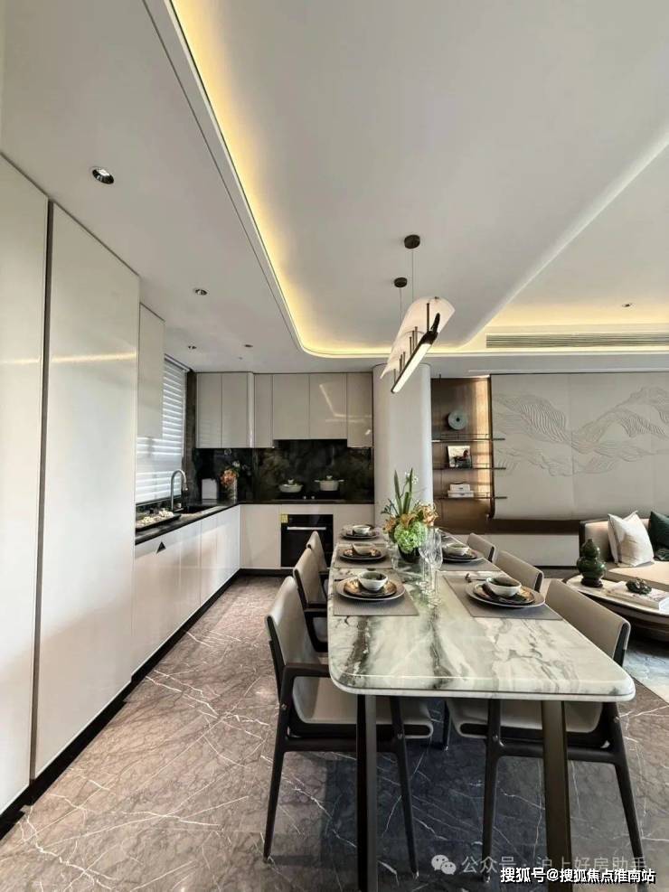 南向大横厅,用光线阐述空间的舒适度与高级感,U型中厨搭配多功能开放西厨,满足世界级美食品位。
