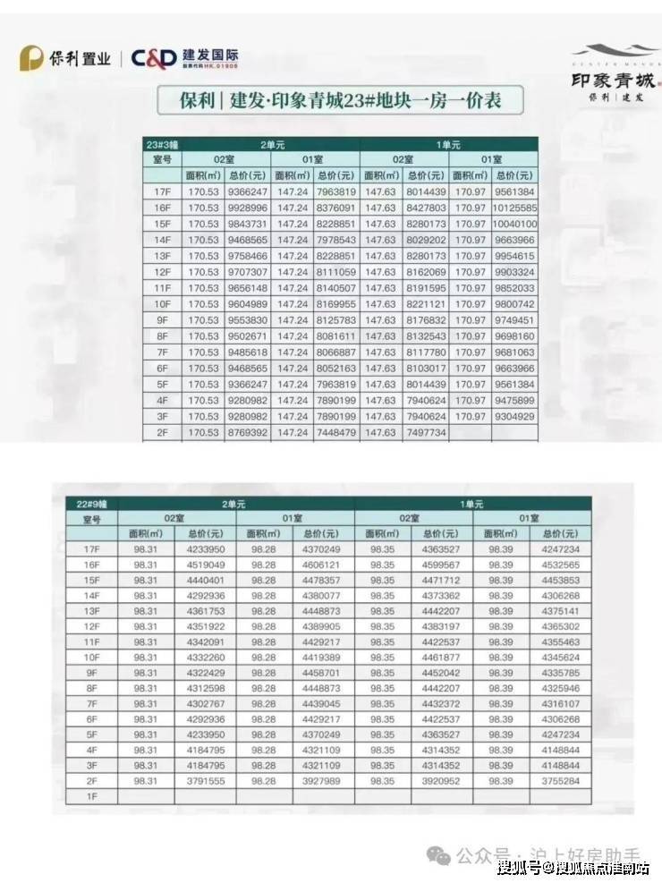 项目一房一价表▼