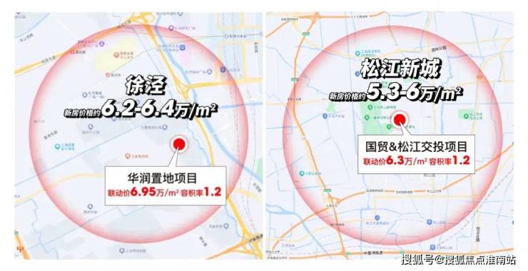 比如松江新城新房均价普遍在5.3-6万/㎡,而容积率1.2的项目的联动价高达约6.3万/㎡。(数据来源,上海土地交易市场 2023年出让土地)