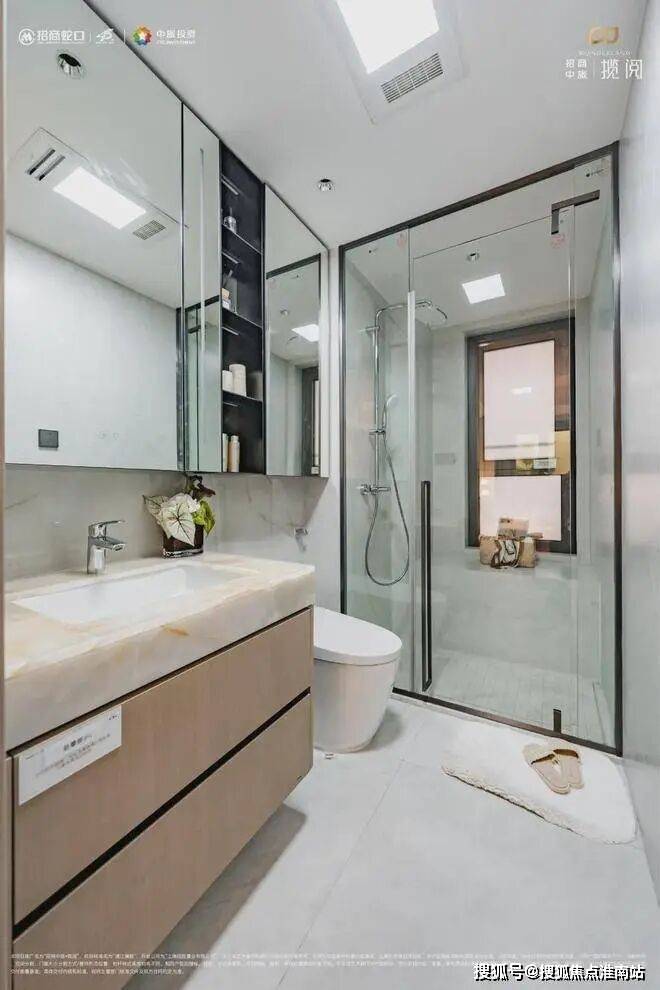 本以为卫生间会是“装修死角”?不不不!「招商中旅·揽阅」想打造奢华质感居所的决心从不是说说而已。项目主卫洗浴区/坐便区/盥洗区实现分段式干湿分离,起居动线更为合理有序。