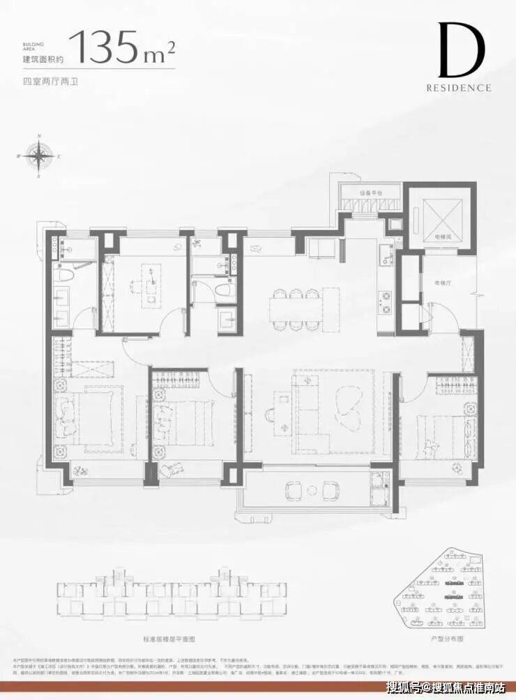 建面约135㎡4房2卫: