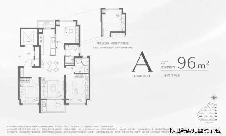 建面约96㎡3房2卫: