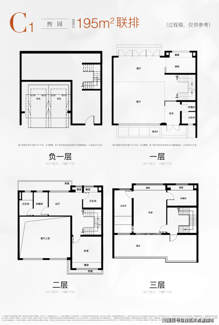 建面约195㎡的C1户型,尺度更加惊人,墅居体验堪称“庄园式”!