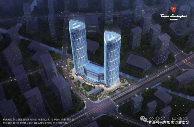 【建筑规划】:T1、T2为250米双塔楼(60层,T1写字楼、T2杭州托尼洛·兰博基尼行政公寓)、T3裙楼(12 层,杭州托尼洛·兰博基尼酒店)